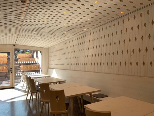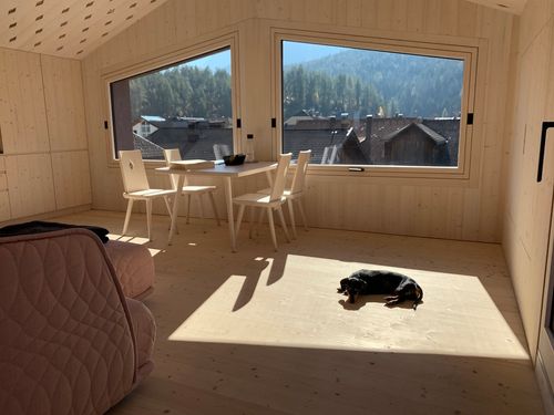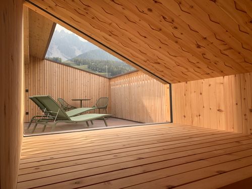 Warm, aufs Wesentliche reduziert und stets der Duft von Fichtenholz in der Nase – in diesen Suites können sich unsere Sinne optimal erholen! Und eins ist schon Sekunden nach der Anreise klar: Den himmlischen Blick auf die Berge wird man so schnell nicht vergessen!