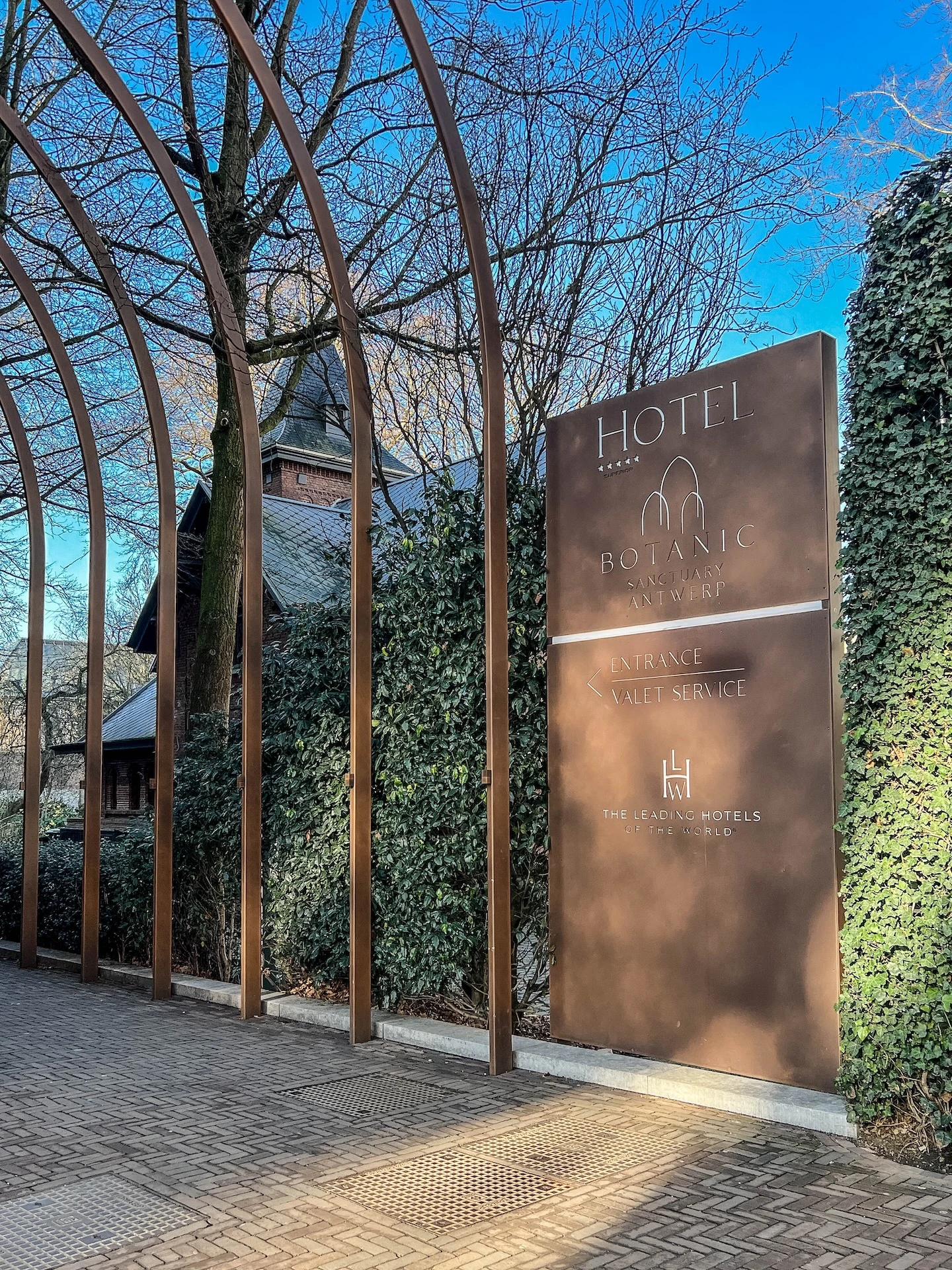 Nur wenige Gehminuten vom zentralen Groenplaats entfernt, beginnt hinter einer Auffahrt mit Torbögen aus Cortenstahl und einer rot glänzenden Kunstinstallation von Kevin Oyen eine andere Welt – mit Stille statt Trubel und Patina statt Pomp.