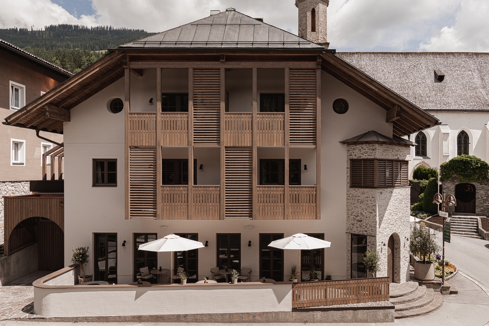 Der Tannerhof ist gefühlt gar kein Hotel, sondern eher ein Urlaub bei Freunden... Die große Anlage, die sich den Berg hinauf zieht durchläuft man spätestens beim zweiten Besuch, wie die eigene. Wohnt man zudem noch in einer der entzückenden alten Hütten oder in einem der coolen Holzschindeltürme und schließt die eigene Haustür auf, ist das Ferienhausbesitzergefühl perfekt.