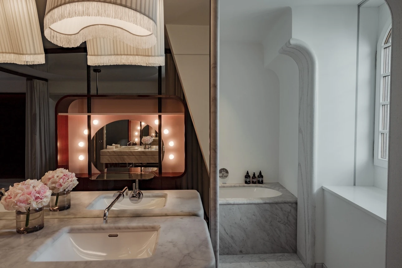 Der Kopfbau am Blumenrain 2 gehört bereits seit 2004 zum Hotelensemble. Nun wurde er vom Basler Architekturbüro „Herzog & de Meuron“ neu interpretiert und bewusst anders gestaltet. Viele klassisch-elegante Elemente, die ich mit dem „Les Trois Rois“ verbinde, sind geblieben – Kronleuchter, Marmor und der französische Stil prägen weiterhin das Bild. Gleichzeitig wurde das Interieur um zeitgenössische Details erweitert, etwa kräftige Farbakzente, Hochglanzflächen oder moderne Lichtinstallationen. In allen Suiten hängt die eigens für das Haus entworfene Glaspendelleuchte „Exhale“. Ihr geschwungenes, wellenförmiges Glas wurde vom Basler Kunsthandwerker Matteo Gonet gefertigt. Von den neuen Unterkünften fasziniert mich vor allem die 240 Quadratmeter große „Suite des Rois“ mit samtroten Wänden und Teppichen, eigenem Fitnessraum und Esszimmer. Vom Balkon habe ich einen hervorragenden Blick auf die Schifflände und das Rheinpanorama.